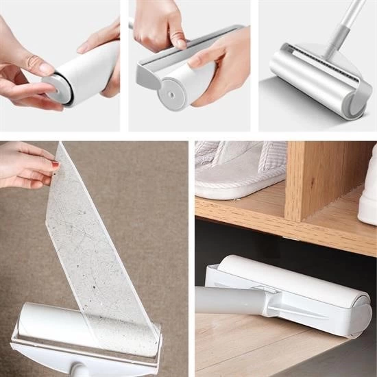 Клейкий ролик для уборки ворса для практичной уборки, телескопическая выдвижная ручка 24 см с 2 запасными насадками