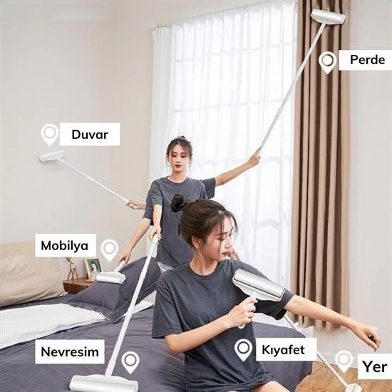 Липкий ролик для удаления ворса Epilons: идеально подходит для практичной уборки, имеет телескопическую выдвижную ручку длиной 24 см и 2 запасные насадки.