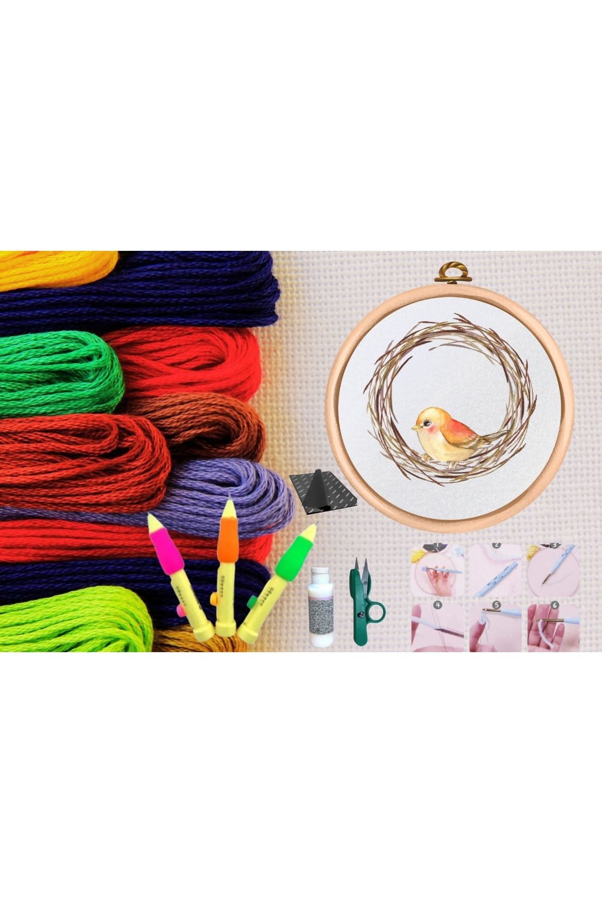 Этот набор для вышивания предлагает полный стартовый комплект для тех, кто хочет научиться или продолжить заниматься вышивкой иглой. В набор входят следующие материалы: 3 иглы для иглопробивания: три иглы разной толщины подходят для различных типов ниток и узоров. Иглы позволяют практиковать различные техники вышивания, от мелких деталей до заполнения больших площадей. Ткань: ткань, специально предназначенная для иглопробивания, выбирается так, чтобы игла легко проникала и четко проявляла рисунок. Обычно предпочтительны хлопок или лен. Пяльцы: пяльцы, которые надежно удерживают ткань, предотвращая ее соскальзывание во время вышивания и облегчая вашу работу. Они могут быть сделаны из дерева или пластика. Клей для иглопробивания: клей для иглопробивания используется для фиксации ниток и узора после завершения вышивки. Этот клей предотвращает ослабление ниток со временем. Ножницы для ниток: острые ножницы для ниток позволяют точно обрезать нитки. Они небольшие и эргономичные, что делает их простыми в использовании во время вышивания. Изображение для иглопробивания: рисунок для иглопробивания, который можно использовать в качестве руководства. Эта схема вдохновит вас и предлагает схемы разной сложности: от начального до продвинутого уровня. В этот набор входят все необходимые материалы, чтобы начать работать с вышивкой пуансоном или улучшить уже имеющиеся проекты. Вышивка пуансоном — это одновременно расслабляющее и творческое занятие, и этот набор поможет вам легко освоить её и практиковаться.