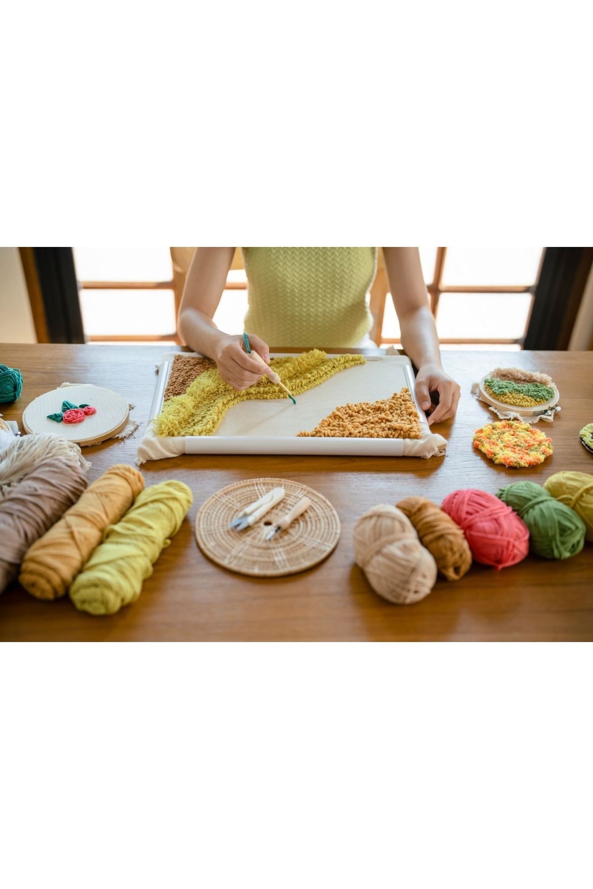 Этот набор для вышивания предлагает полный стартовый комплект для тех, кто хочет научиться или продолжить заниматься вышивкой иглой. В набор входят следующие материалы: 3 иглы для иглопробивания: три иглы разной толщины подходят для различных типов ниток и узоров. Иглы позволяют практиковать различные техники вышивания, от мелких деталей до заполнения больших площадей. Ткань: ткань, специально предназначенная для иглопробивания, выбирается так, чтобы игла легко проникала и четко проявляла рисунок. Обычно предпочтительны хлопок или лен. Пяльцы: пяльцы, которые надежно удерживают ткань, предотвращая ее соскальзывание во время вышивания и облегчая вашу работу. Они могут быть сделаны из дерева или пластика. Клей для иглопробивания: клей для иглопробивания используется для фиксации ниток и узора после завершения вышивки. Этот клей предотвращает ослабление ниток со временем. Ножницы для ниток: острые ножницы для ниток позволяют точно обрезать нитки. Они небольшие и эргономичные, что делает их простыми в использовании во время вышивания. Изображение для иглопробивания: рисунок для иглопробивания, который можно использовать в качестве руководства. Эта схема вдохновит вас и предлагает схемы разной сложности: от начального до продвинутого уровня. В этот набор входят все необходимые материалы, чтобы начать работать с вышивкой пуансоном или улучшить уже имеющиеся проекты. Вышивка пуансоном — это одновременно расслабляющее и творческое занятие, и этот набор поможет вам легко освоить её и практиковаться.