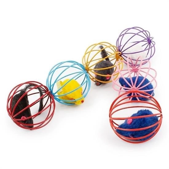 Цветная металлическая клетка, плюшевая игрушка для мышки, кошки, собаки, мяч для игры, 6 см
