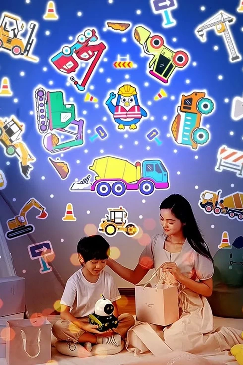 Образовательный и весёлый ночник-проектор с 12 фильмами в виде роботов для детей