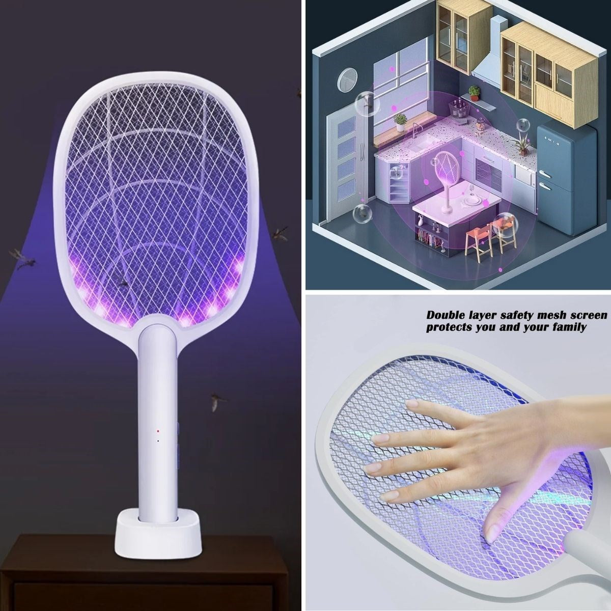 Аккумуляторная ракетка-репеллент от комаров с настольной подставкой и фиолетовым светом 5 Вт
