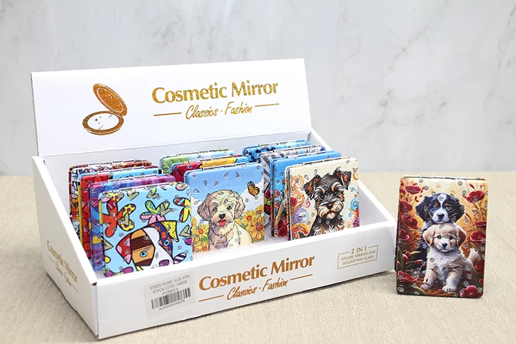 Тонкое ручное зеркало прямоугольной формы с вышитым камнем и изображением милой собаки (ALK4576)