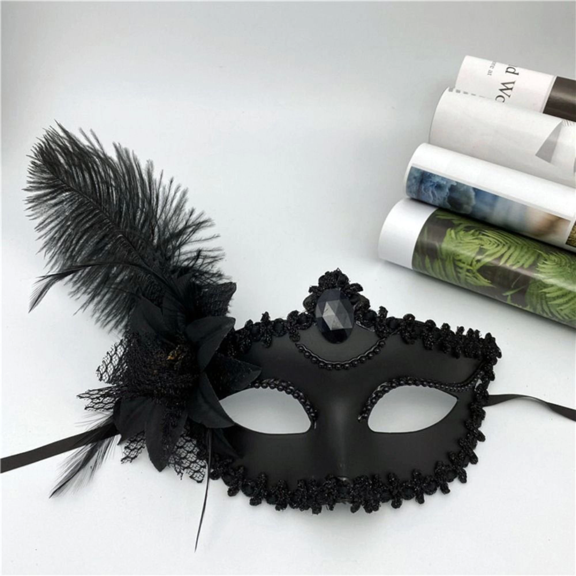 Венецианская маска для выпускного бала с перьями и розами, черная, 16x22