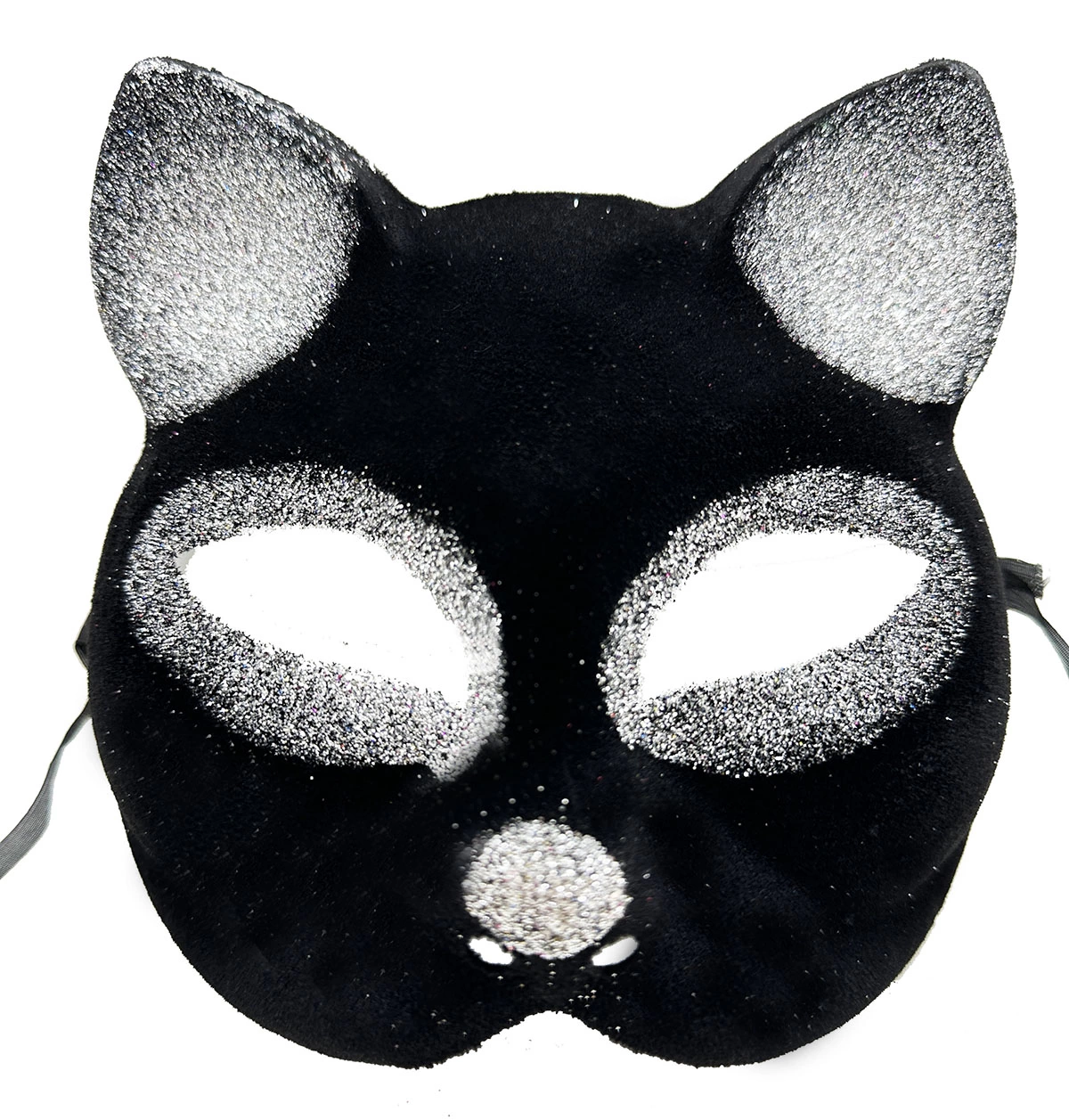 Создайте милый и веселый образ и сделайте особенные дни незабываемыми с помощью черной серебристо-блестящей замшевой маски для кошек.