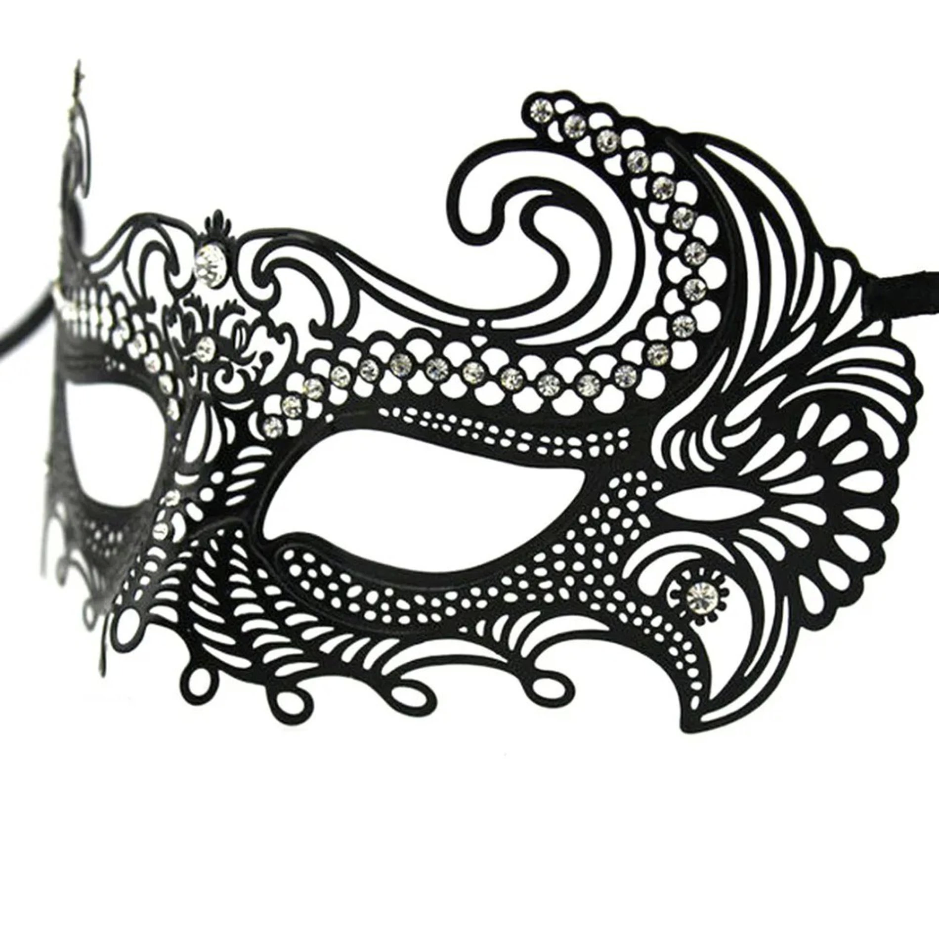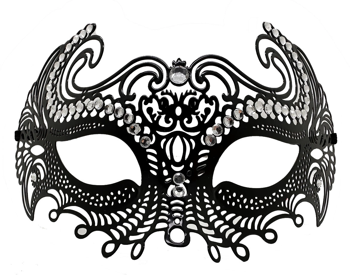 Венецианская маска для выпускного бала из металла с лазерной резкой черного цвета и кристаллами