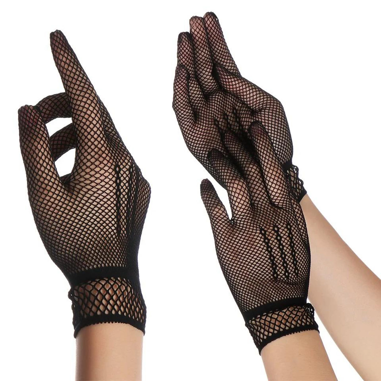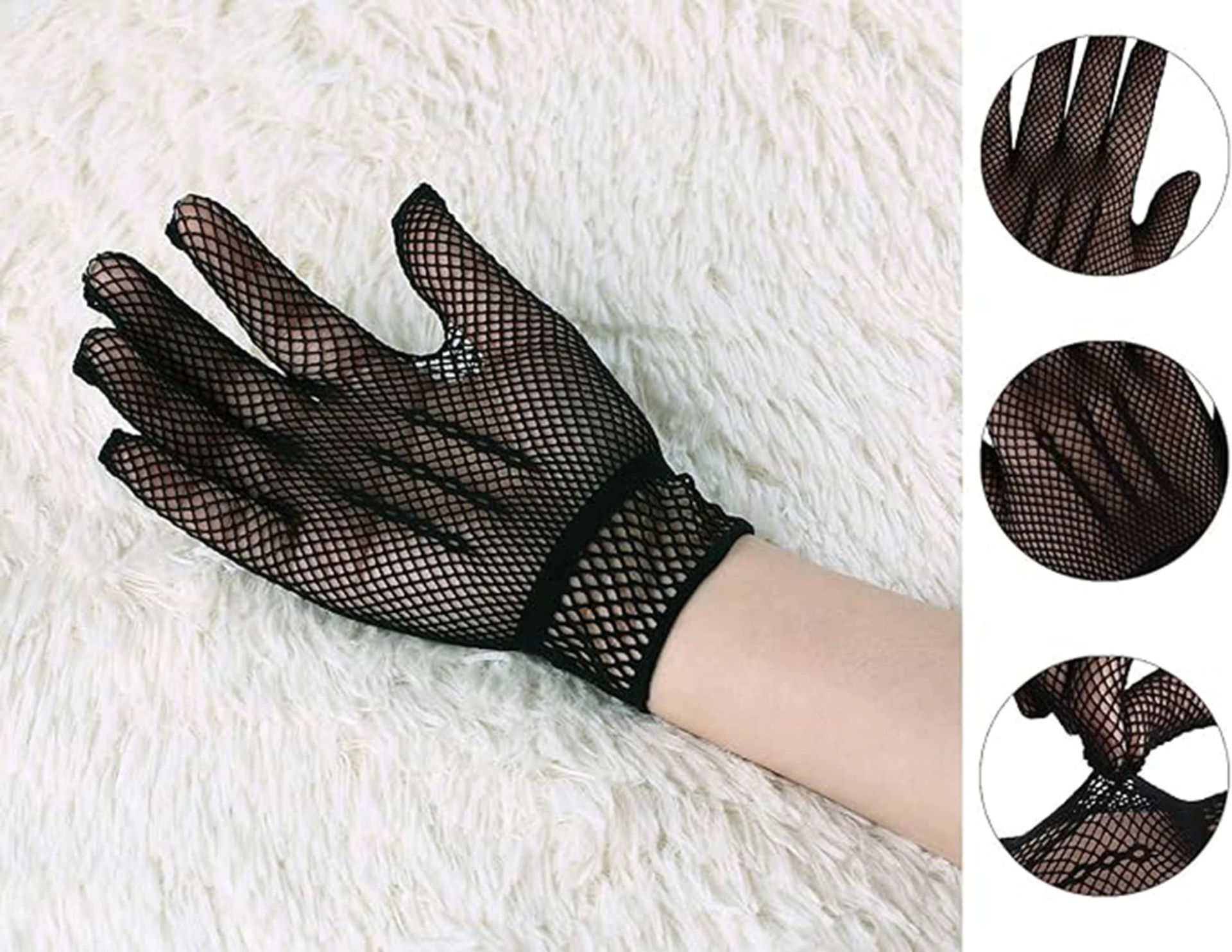 Черные перчатки в сеточку из лайкры — идеальный аксессуар для элегантного и стильного образа. Вязаный дизайн пальцев подчеркивает изящные линии рук, а сетчатые детали добавляют современный штрих. Эти перчатки для взрослых удобно сидят на руке любого размера.