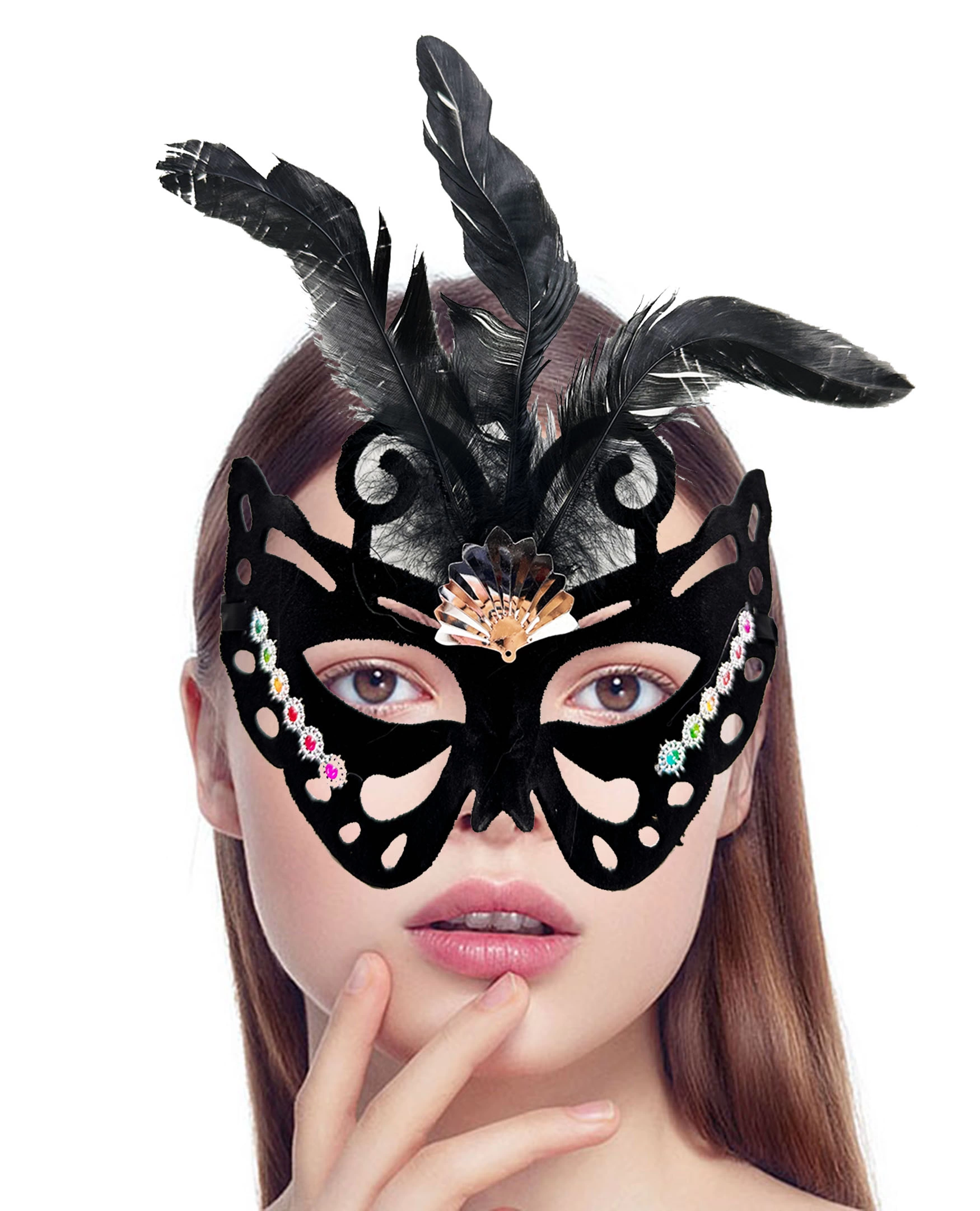 Маска для вечеринки в виде пернатой бабочки с черным замшевым покрытием 24x18 см
