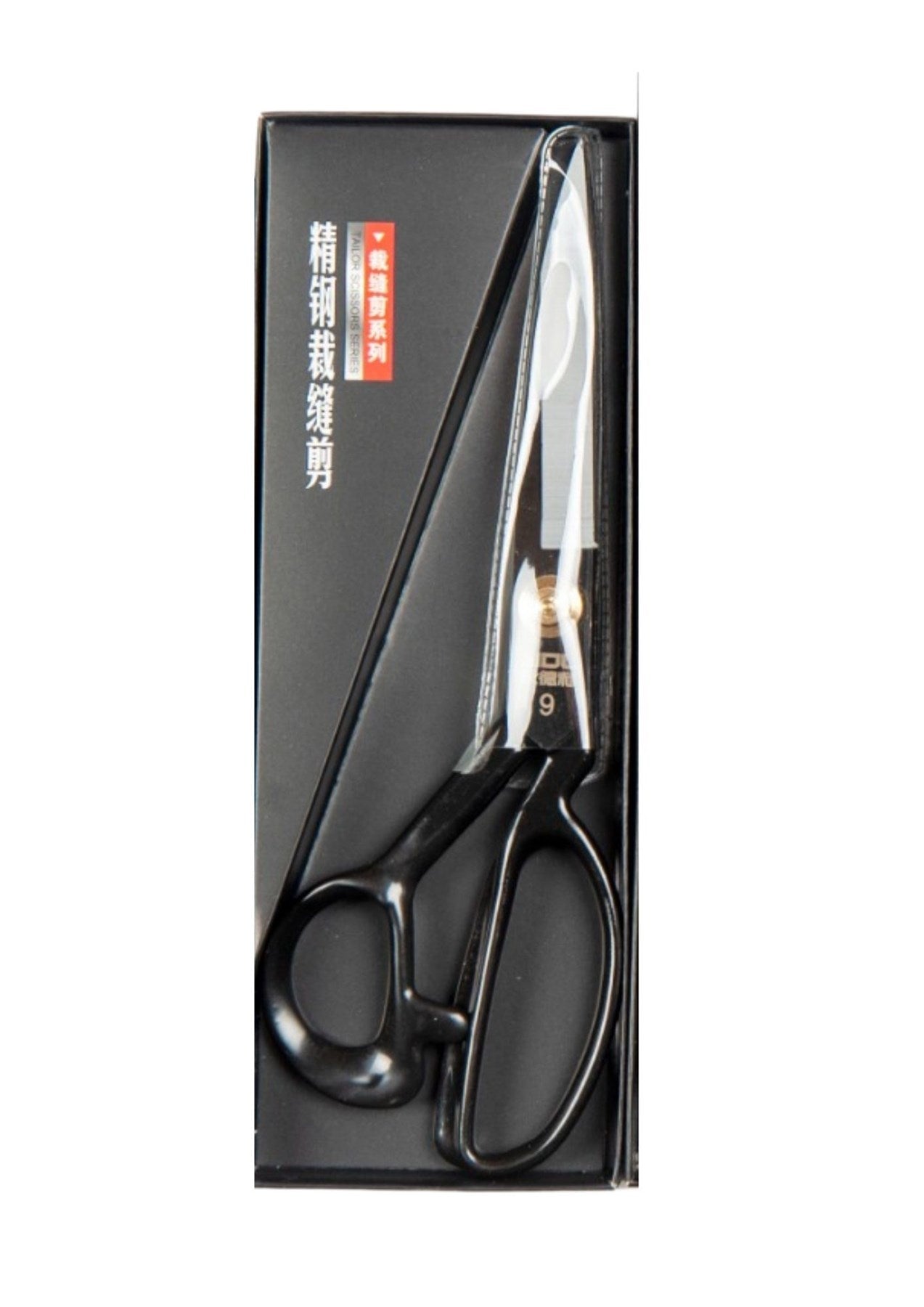Портновские ножницы размера 9 с черной металлической ручкой