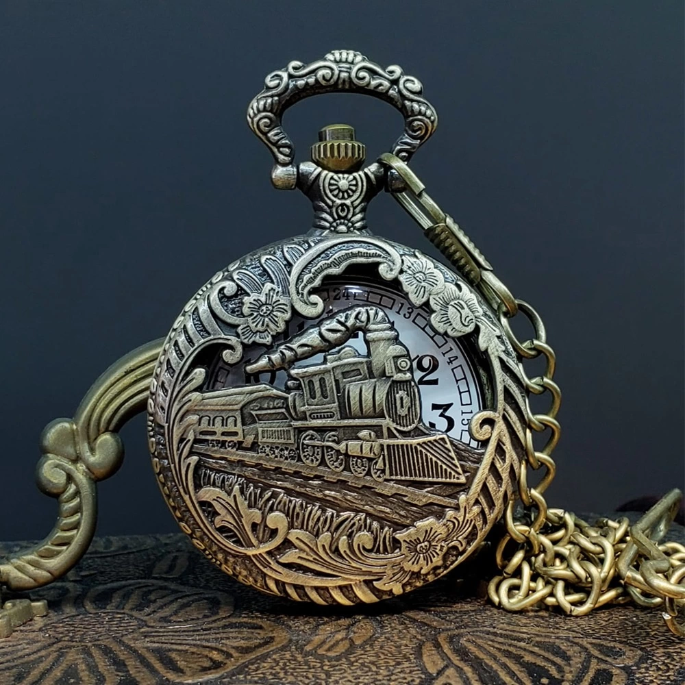 Рельефный рисунок поезда на карманных часах придает им необычный внешний вид .