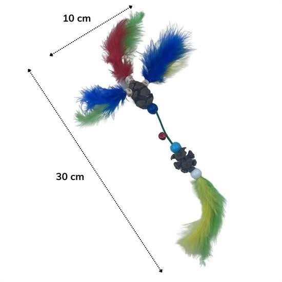 Игрушка для кошек с перьями, деревянными бусинами и колокольчиками, разноцветная игрушка для кошек