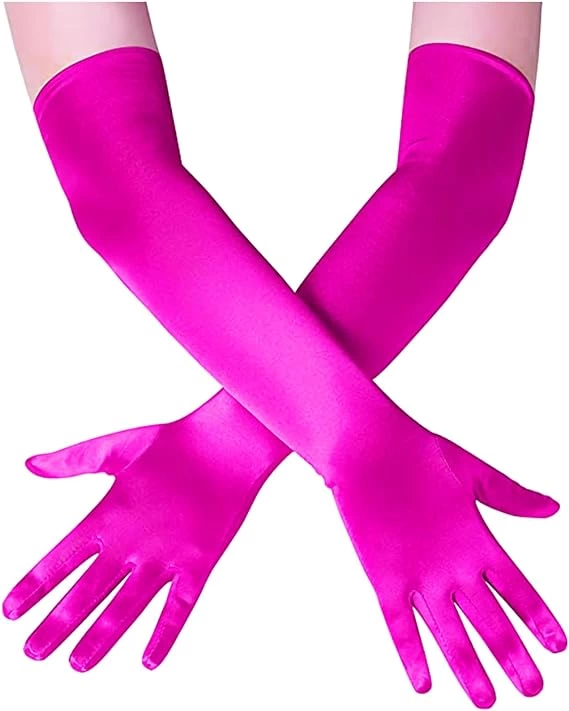 Длинные блестящие атласные перчатки цвета фуксии