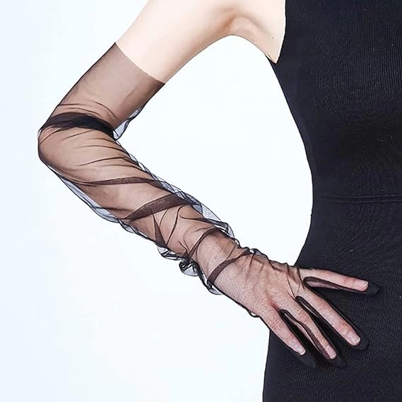Длинные черные перчатки Mega Tulle для взрослых из лайкры