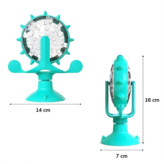 Эта вращающаяся игрушка с колёсами имеет конструкцию, напоминающую мельницу, которая позволяет кошке вращаться на 360 градусов лёгким нажатием на колесо. Игрушку можно остановить во время вращения. Вы можете добавить корм или лакомства, сняв мягкий стопор сверху.