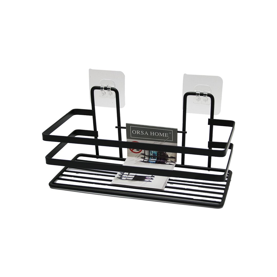• Многоцелевая черная квадратная полка для ванной с клеящейся вешалкой